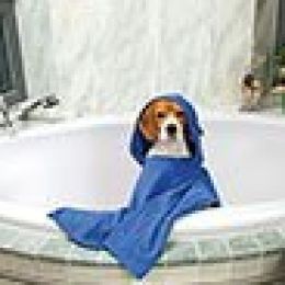 Praktické ručníky pro psy v podobě ponča v modré barvě ve velikosti M 55x70 cm. Ochrání proti prochladnutí po vykoupaní a nebo vycházce v dešti.