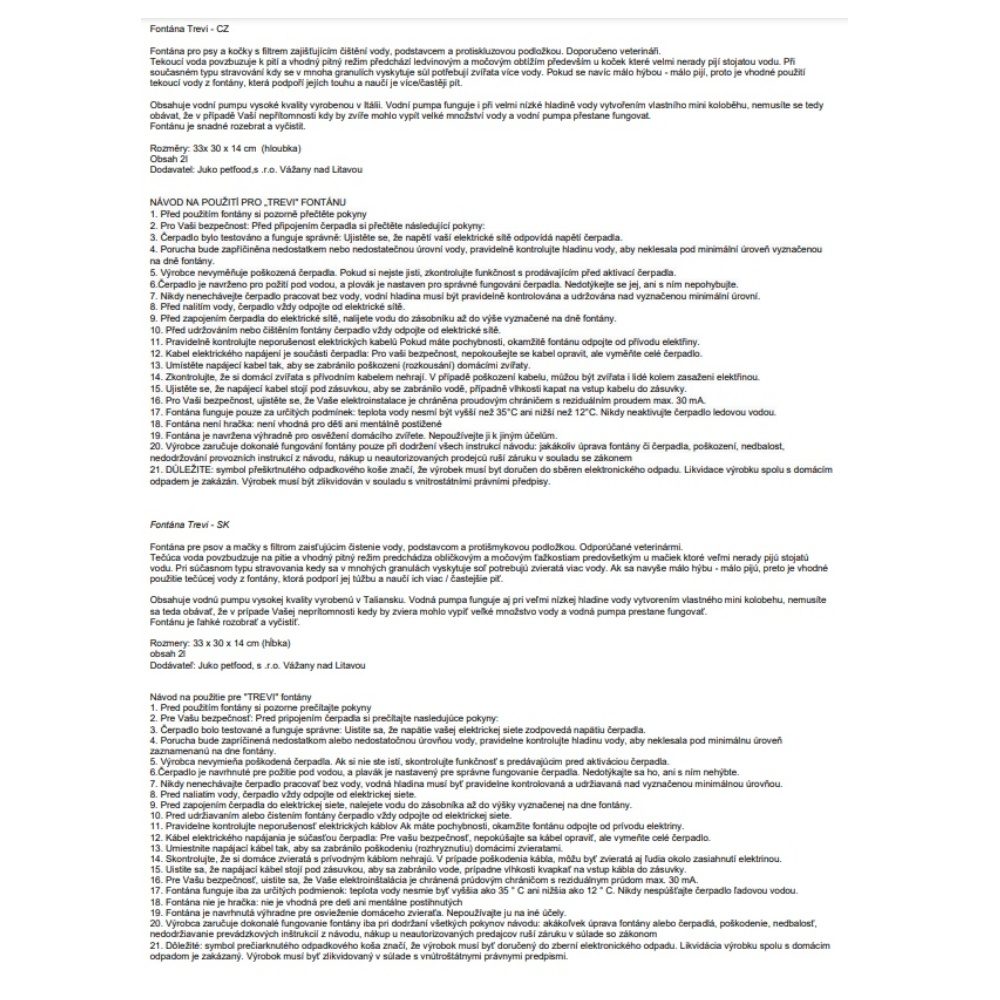 Obsahuje vodní pumpu vysoké kvality vyrobenou v Itálii. Vodní pumpa funguje i při velmi nízké hladině vody vytvořením vlastního mini koloběhu, nemusíte se tedy obávat, že v případě Vaší nepřítomnosti kdy by zvíře mohlo vypít velké množství vody a vodní pumpa přestane fungovat.