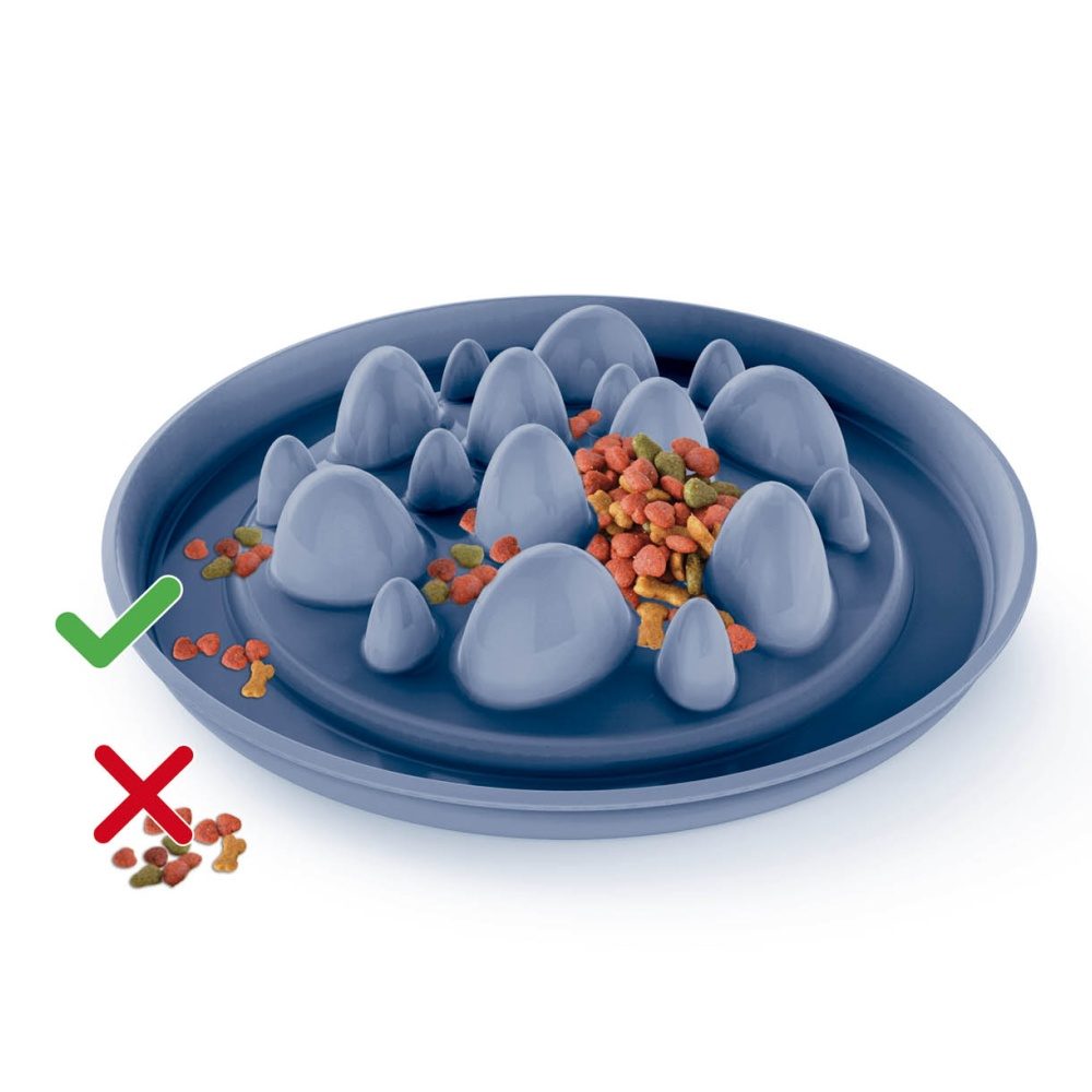 Tvarovaná miska pro psy zabraňující hltání. - protiskluzové nožičky