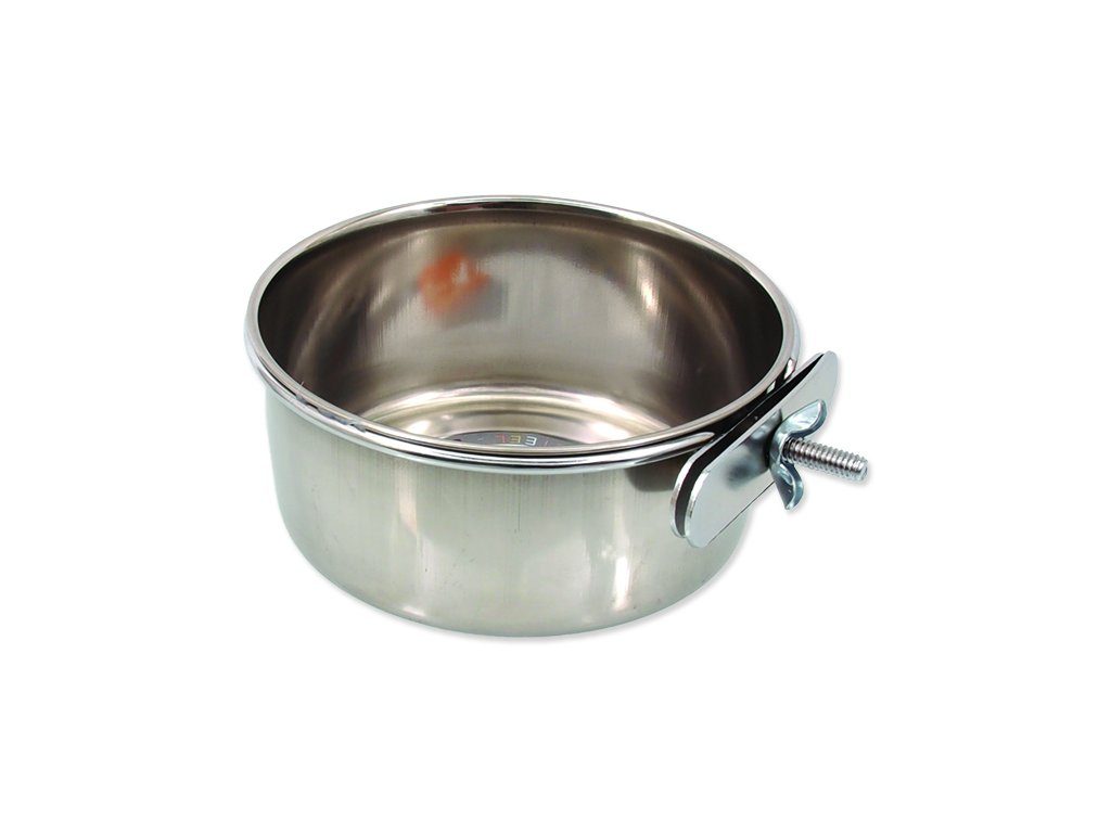 Nerezová miska k přišroubování do klecí pro ptáky.