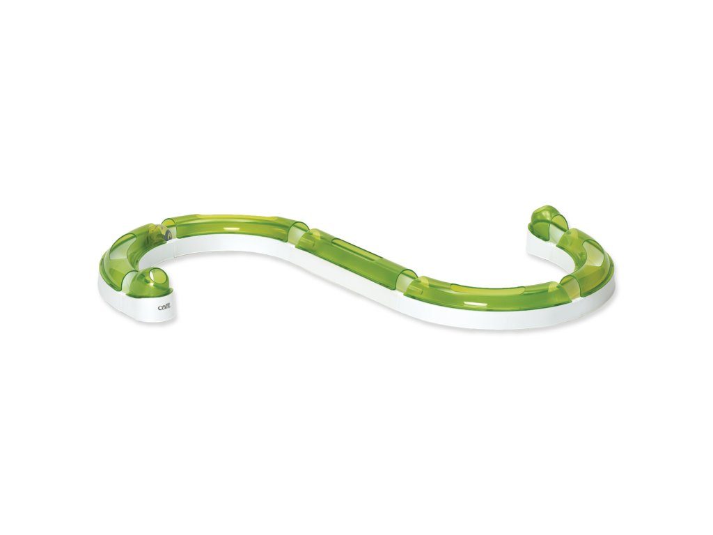Horní díly dráhy jsou z průhledného plastu, takže kočka míček vidí, slyší a díky otvorům ho může snadno koulet, nemůže ho však vyndat.