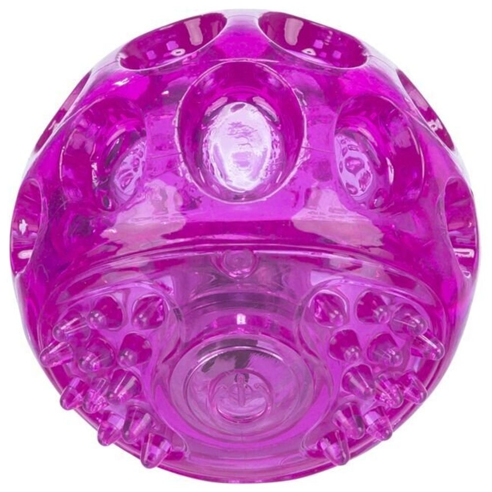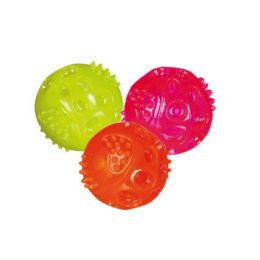 Svítící míček z odolné termoplastové gumy, blikající. Mix barev dle aktuální skladové dostupnosti. Robustní a odolný s vypínačem světla.