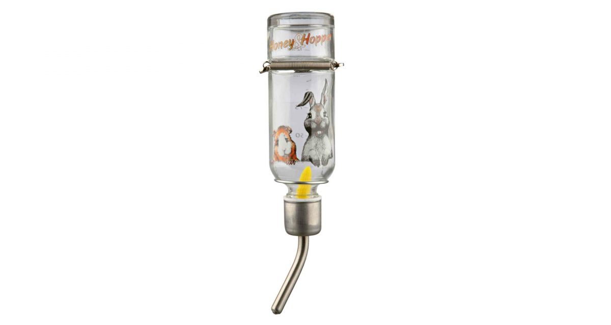 Skleněná napáječka Honey & Hopper s kovovým pítkem pro morčata 250 ml
