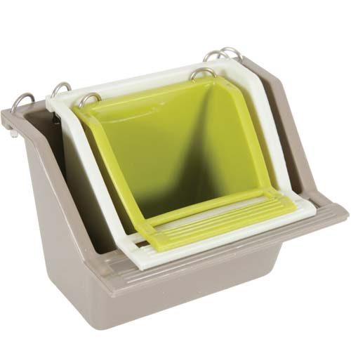 Závěsné krmítko do klece je opatřeno bidýlkem. V nabídce jsou 3 atraktivní barvy. Závěsné plastové krmítko do klece je opatřeno bidýlkem, je vyrobeno ve třech přírodních barvách.