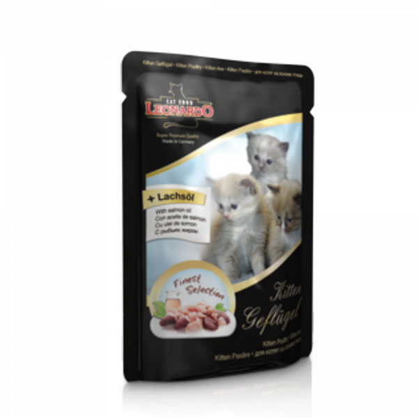 Obsažený lososový olej poskytuje hodnotné Omega 3 nenasycené mastné kyseliny. Kapsičky jsou dostupné v pěti lahodných recepturách: Chicken Pure (kuře), Beef Pure (hovězí), Meat Menu (masový výběr), Fish and Shrimps (ryba a krevety), Poultry (drůbeží) a Kitten pro malá koťátka. Taštičky je také možné míchat s granulovanými superprémiovými krmivy Leonardo.