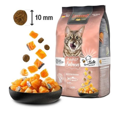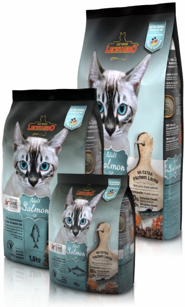 Složení: čerstvý losos (30 %), rybí moučka z mořských ryb (20 %), amarant (15 %), hrachová mouka, bramborový škrob, drůbeží protein, drůbeží tuk, mořský zooplankton (krill 5 %), hydrolyzovaná drůbeží játra, pivovarské kvasnice (2,5 %), sušená jádra hroznového vína (1,5 %), chia semena (1,3 %), sušené lusky svatojánského chleba, chlorid draselný, inulin z čekanky.
