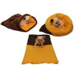 Spací pytel je určen pro štěňátko/koťátko/hlodavce/fretku. Barva: žlutá, hnědá, Materiál: Mikroplyš/plyš, kožešina, Tvar: Obdélníkový, Velikost matrace: Pro malé psy