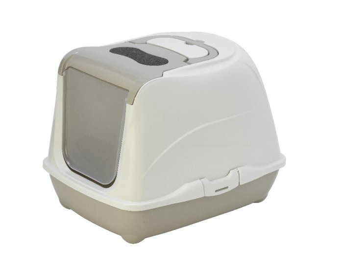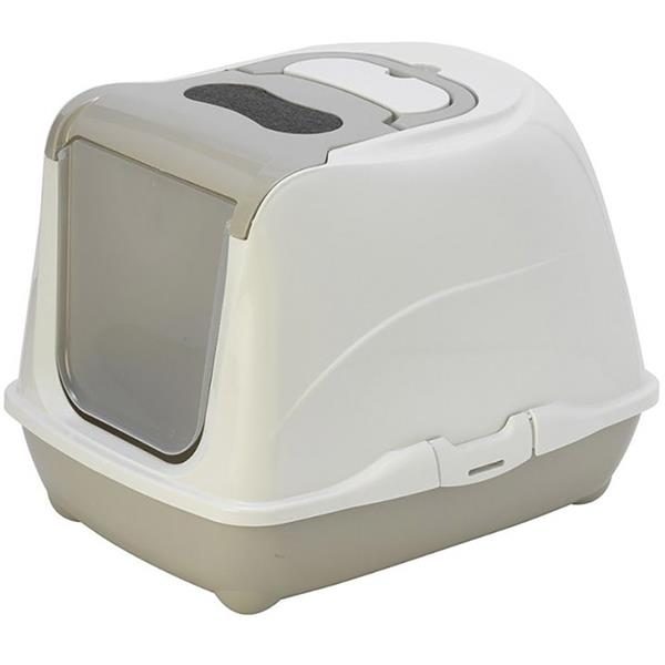 Kryté WC Flip Cat pro kočky se snadným přístupem při vyklízení. Barva: šedá, Vlastnosti: S pachovým filtrem