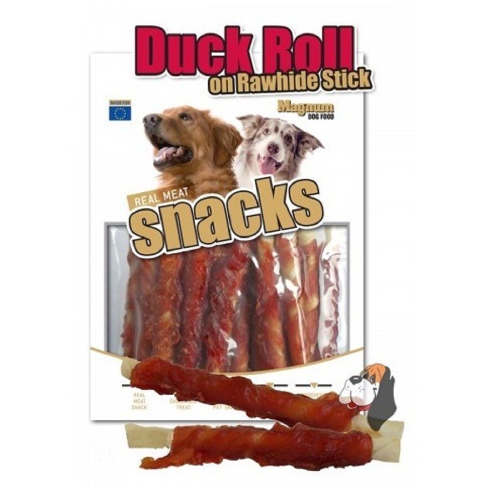 Měkká, přírodní masová pochoutka pro psy - tyčka z hovězí kůže obtočená plátkem lahodného kachního masa.