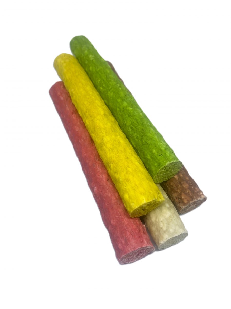 Žvýkací pochoutka pro psy z drcené bůvolí kůže.