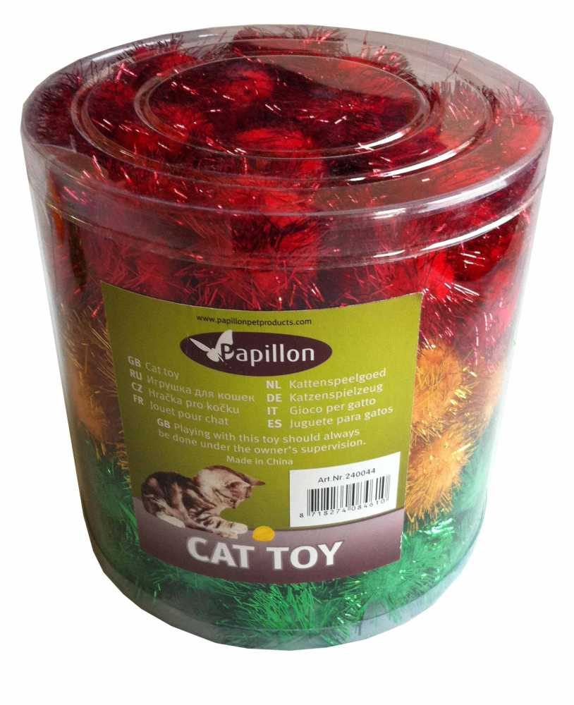 Hračka pro kočku míček. Měkký lehký z plsti a třpytivých třásní vyrobení míček s nízkou životností.
