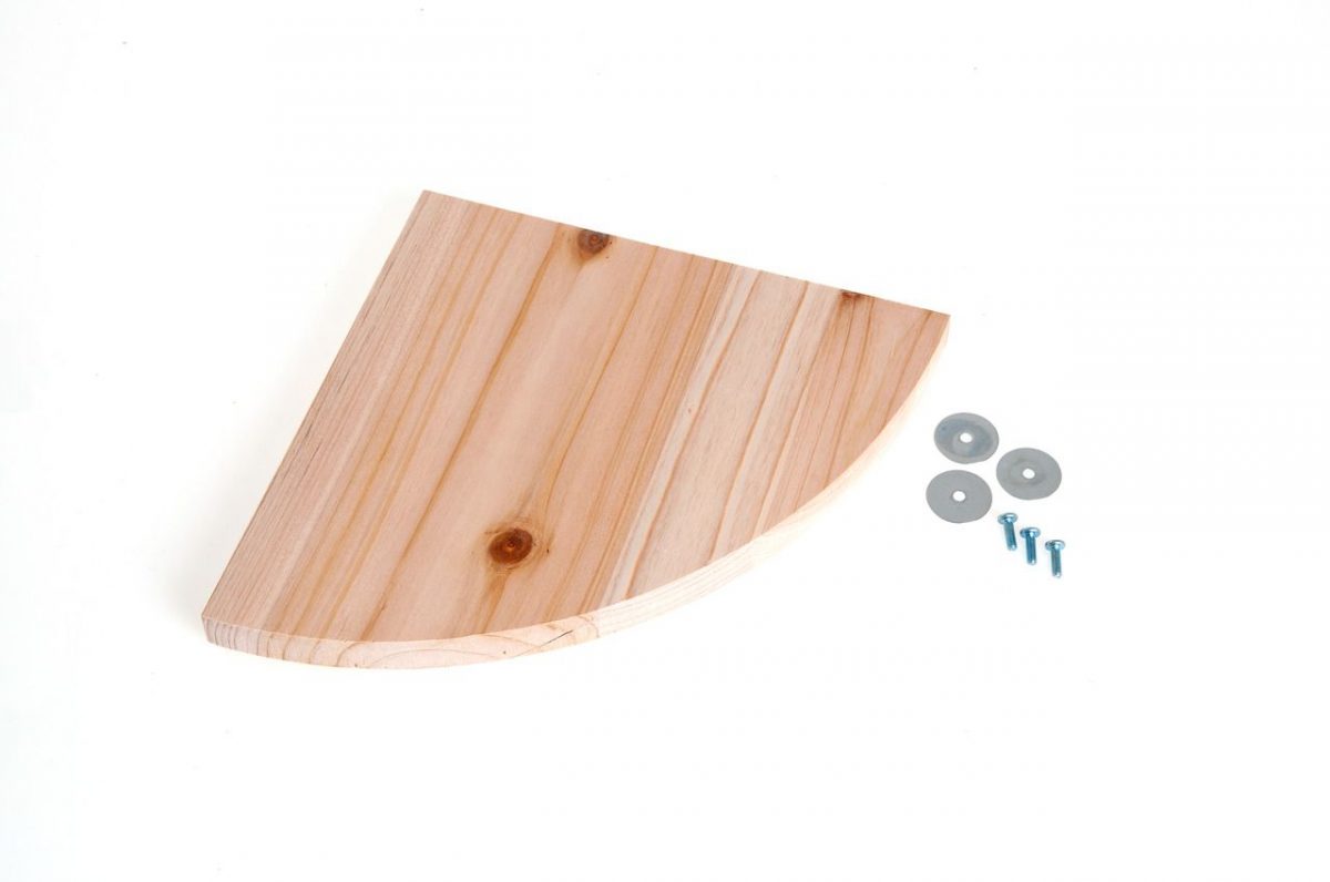 Rohová polička z masivního dřeva s přiděláním na klec. Doplňky: Náhradní díly, Materiál: Dřevo