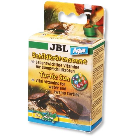 JBL Turtle Sun Aqua obsahuje vyvážený komplex vitamínů v tekuté formě. Speciální emulze dlouhodobě stabilizuje všechny vitamíny, aby byly dobře vstřebatelné a zajišťuje želvám okamžitou vitalitu bez projevů deficitu.