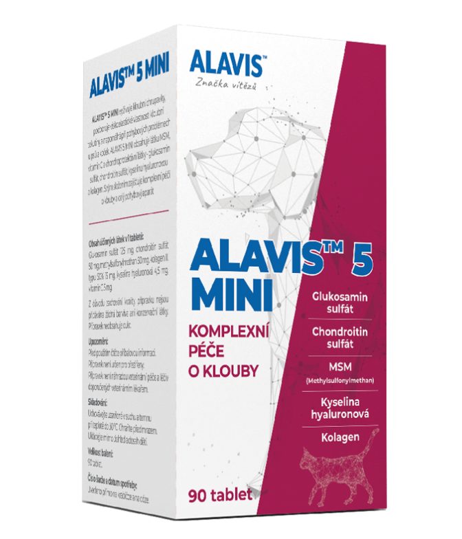 ALAVIS™ 5 MINI vyživuje kloubní chrupavky, podporuje promazávací vlastnosti kloubní tekutiny, napomáhá při pohybových problémech u psů a koček. Obsahuje všechny důležité látky, které se v kloubech, pojivových tkáních a chrupavce běžně vyskytují a umožňuje tak komplexní péči o pohybový aparát.