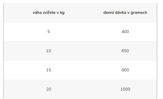 Živočišné produkty 95% (z toho krůtí maso 15%), obiloviny (ječmen 4,1%).