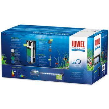 Kompletně vybavené akvárium s krytem, osvětlením NovoLux 80 - 10,5W, filtračním systémem Bioflow Super a 100W topítkem.