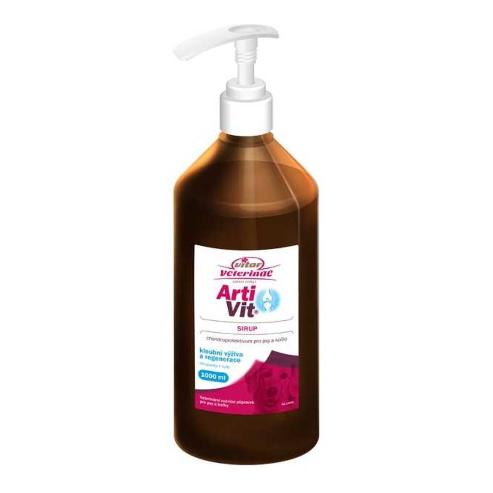 VITAR Veterinae ArtiVit Sirup obsahuje komplex látek důležitých pro kloubní výživu. Forma sirupu umožňuje bezproblémové podávání i při dlouhodobé terapii. Psi i kočky jej velmi dobře snáší.