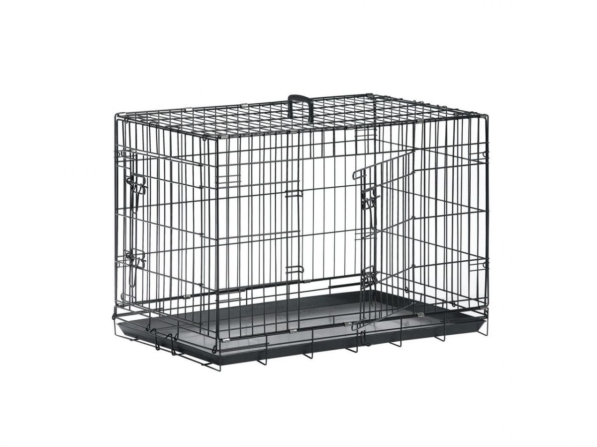 Drátěná klec v černé barvě se dvěma vchody pro malá zvířata s rukojetí. Velikost 77x47x54cm. Barva: černá, Materiál: Plast, guma, Kov