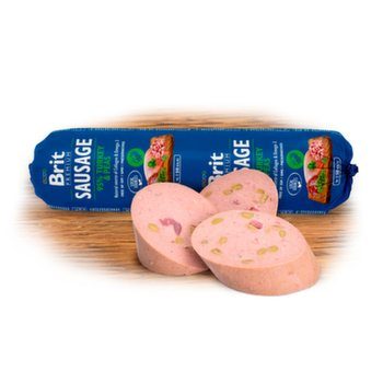 Krmivo pro psy Brit Sausage Turkey & Pea 800 g s 95 % masa je vhodné pro všechny kategorie psů. Vzhledem k vlhké konzistenci velice psům chutná a dodá jim potřebnou energii při vysoké fyzické zátěži i v rekonvalescenci. Maso obsahuje hypoalergenní krůtí maso a neobsahuje obiloviny, proto je vhodné i pro psy s citlivým zažíváním. Díky snadnému porcování a konzistenci masa se toto krmivo skvěle hodí i jako pamlsek při tréninku.