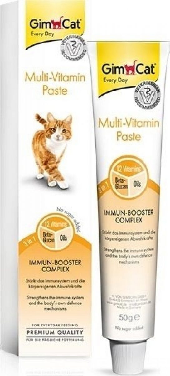 Beta-glukan a kvalitní oleje multivitaminové pasty GimCat podporují sílu a imunitu zvířete a aktivují vlastní obranný systém. Každý den nabídněte své kočce pastu přímo z tuby nebo na prstu nebo pastu naneste na krmivo.