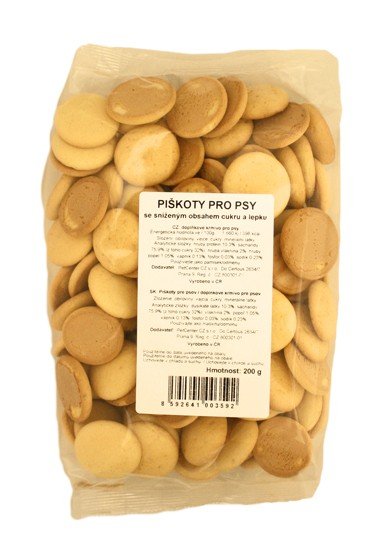 Piškoty pro psy je pamlsek pro psy se sníženým obsahem tuků a cukrů. Obohaceny a vitamíny a minerály. Stáří psa: Senior, Dospělý, Štěně, Velikost plemene: Trpasličí do 5 kg, Velké a obří nad 25 kg, Střední 10-25 kg, Malé 5-10 kg