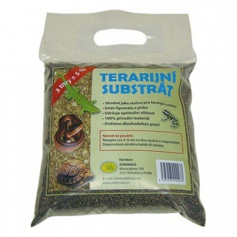 Použití: stačí jednoduše vysypat přímo do terária, většinou se používá vrstva cca 3 - 6 cm, ale především záleží na chovaném druhu, hrabavé a větší druhy zvířat vyžadují samozřejmě vyšší vrstvu. Pomocí různých větví, kořenů a kamenů se můžete také snažit trochu vymodelovat reliéf dna. Například pro suchozemské želvy je to důležité - v přirozeném prostředí také není terén jednotvárný a rovnoměrný a zvířata musí při pohybu překonávat různé překážky. Nebojte se také používat různé druhy substrátu na různá místa v teráriu - v jedné části můžete mít tento terarijní substrát a na druhé například piniovou kůru nebo kamínky. Oddělit se dají třeba pomocí dlouhého kamene nebo kořene (ale ani částečné smíchání v místě překryvu nevadí). Terarijní substrát udržujte stále vlhký, pokud moc vyschne může prášit. Tento substrát je vhodný pro všechny tropické druhy zvířat, které vyžadují vlhký podklad. Ale výborně se hodí i do polosuchých terárií - použijte terarijní substrát jen na část dna a na druhou část dejte jiný substrát, a to takový, který je vhodné udržovat suchý (např. kokosové chipsy, piniovou kůru, pouštní písek, říční písek...atd). Zvířeti to umožňuje vybrat si z různých podkladů a vlhkostních poměrů, podle toho, co mu zrovna vyhovuje a zároveň to dodá interiéru terária daleko zajímavější vzhled.
