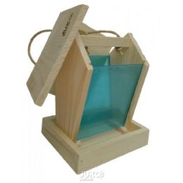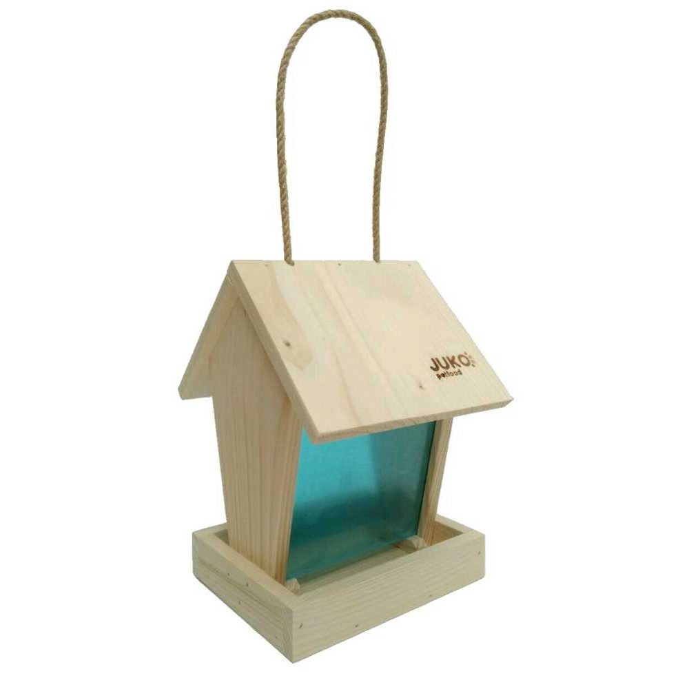 Násyp tvoření bočními dřevěnými stranami a plexisklem udrží krmivo v suchu dokud ptáci neodeberou krmivo ze spodní části.