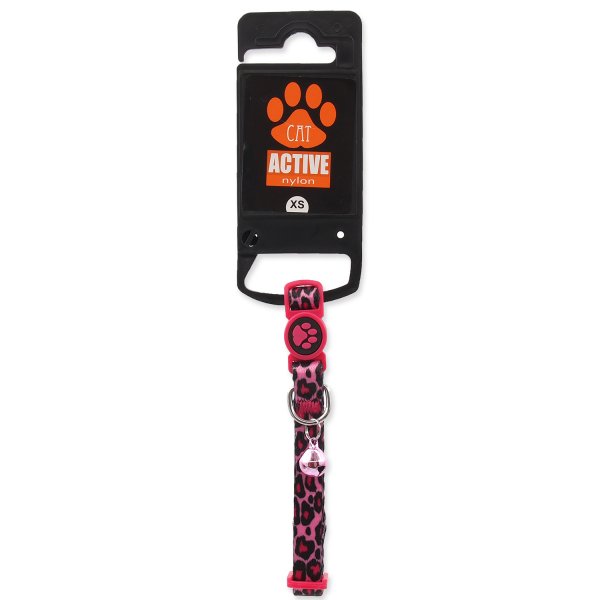Obojek ACTIV CAT nylonový leopard růžový XS