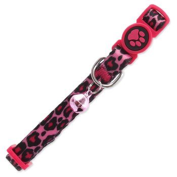 Nastavitelný nylonový obojek s leopardím potiskem a rolničkou.