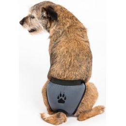 Díky pružným okrajům a v pase našité měkké gumě kalhotky perfektně sedí a nijak fenku neomezují v pohybu. Samozřejmostí kalhotek je praktický otvor pro ocasek a uvnitř síťka na zachycení vložky. Velmi snadné a rychlé oblékání. Hárací kalhotky zdobí krásná výšivka tlapky.