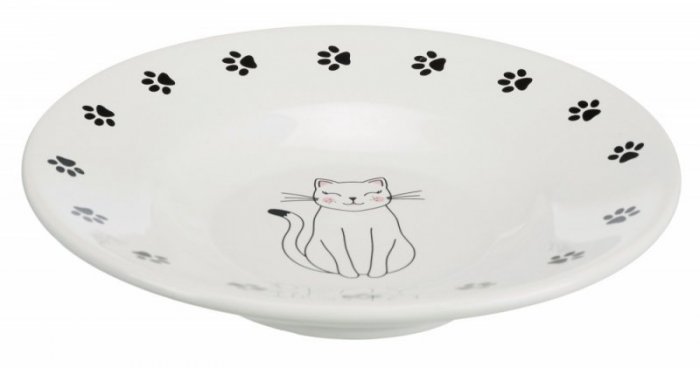 Designová miska pro krátkonosé kočky. Velmi pěkný motiv. Barva: bílá, Materiál: Keramika