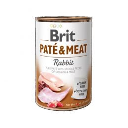 Vysoký podíl kvalitního masa v konzervě Brit Pate & Meat Rabbit a jeho šetrné zpracování je zárukou vynikající chuti i vůně. Lahodná kombinace skutečných masových kousků a orgánového masa v paštice dokonale uspokojí i ty nejnáročnější psí gurmány. Brit Paté & Meat Rabbit je ideálním doplňkem i ke granulím. Pomáhá zlepšit příjem krmiva a doplnit tekutiny. Krmivo neobsahuje obiloviny, sóju ani GMO.