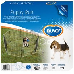 Tento výběh značky Duvo+ pro štěňata a malé psy lze snadno a rychle sestavit. Můžete jej použít doma i venku, kde se dá díky 8 kolíkům připevnit k zemi. Součástí balení je také síťka, takže se vašemu psímu miláčkovi nepodaří utéct a zároveň mu zajistí stín. Materiál: Kov
