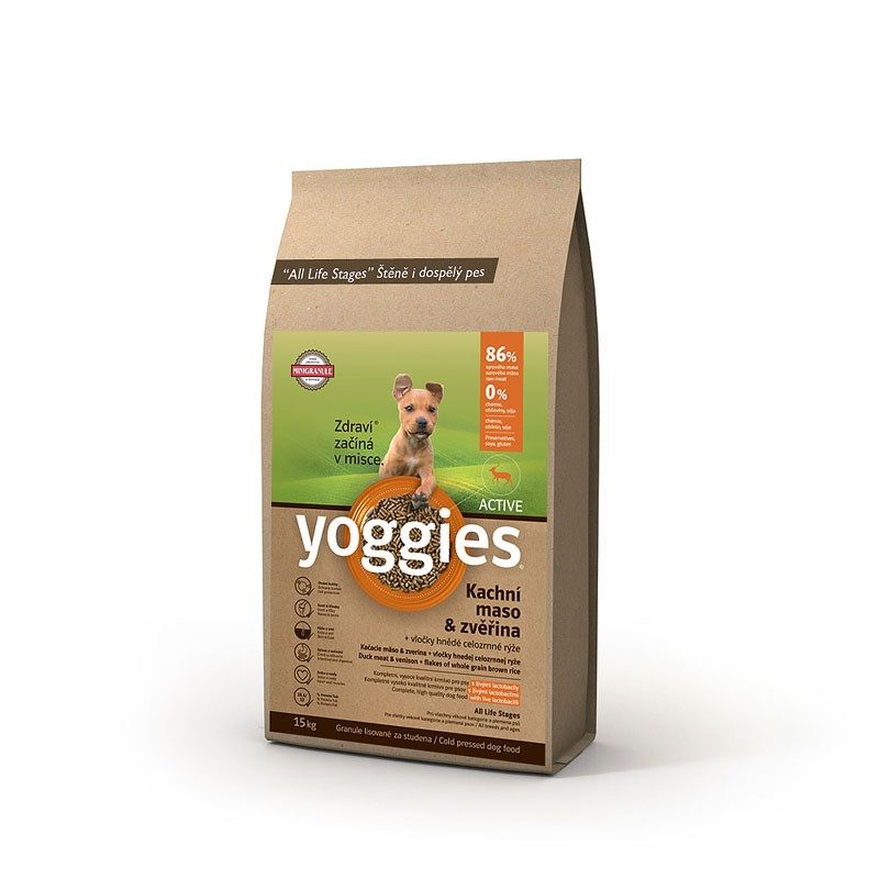 Yoggies Active MINIGRANULE s kachnou a zvěřinou 15kg + dárek Kostičky masové 20ks