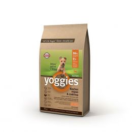 Váš pes si jistě zamiluje chuť a vůni syrového, pomalu sušeného masa i dalších surovin, protože tyto granule svým složením i vůní simulují potravu psa v přírodě. Granule Yoggies Active jsou vyrobeny bez jakékoliv chemie a konzervantů jen z kvalitního syrového masa i surovin (obsah syrového masa v granulích Yoggies Active před pomalým sušením je ca 86%). Nepřidává se žádný přídatný rostlinný tuk, konzervanty ani aditiva a granule neobsahují žádnou masokostní moučku, lepek, sóju ani geneticky upravené suroviny apod. Proto zákazníci začali nazývat granule Yoggies "sušený BARF" Granule Yoggies Active obsahují 28,6% kvalitních proteinů a 12% tuku získaných výhradně z masa a přírodních zdrojů. Suroviny jsou mlety „nahrubo“ proto, aby podporovaly peristaltiku žaludku a střev i skvělé trávení a vstřebávání potravy. Proto granule nebobtnají, ale rozpouští se, čímž se potlačuje riziko torze žaludku. Granule hodné pro štěně - I když jsou všechna krmiva Yoggies vhodná pro dospělé psy i štěňata ("All Life Stages"), granule Yoggies Active doporučujeme jako první volbu, pokud hledáte nejlepší granule pro štěně středních a velkých plemen. Důvodem je vyšší obsah proteinů, tuků a vloček z hnědé loupané rýže a brambor, tedy energie pro každý den. Co jsou granule lisované za studena s příměsí laktobacilů: Běžné granule jsou dnes vyráběny procesem extrudace. To je proces, při kterém se nejdříve vyrobí z různých surovin těsto (podobnému paštice), které poté prochází procesem extrudace, kdy se zbaví vody díky velkému tlaku a teplotě až 200°C. Při tomto procesu je bohužel zničena většina přírodních živin a vitamínů. Tyto důležité živiny mohou být do granulí poté přidány pouze jedinou, bohužel chemickou cestou. Yoggies granule lisované za studena jsou svou chutí i vůní blíže přírodě. Již z výroby si zachovávají přirozenou chuť, vůni a výživové hodnoty díky lisování za studena (do 38°C). Suroviny jsou pečlivě vybírány, sušeny, mlety a poté jen lisovány do tvaru granulí. Yoggies granule mají přirozené výživové složení získané ze surovin použitých k výrobě. Obsahují maso, ovoce, bylinky, látky prospěšné pro vývoj i vitalitu psa a také příměs živých laktobacilů. Ty se v těle psa postarají o podporu střevní mikroflóry, posílení imunity a budoucí dobré zdraví psa a spokojenost chovatele. Yoggies granule lisované za studena s laktobacily jsou vyvinuty jako "All Life Stages" pro štěňata, dospělé i starší psy. V tomto balení naleznete MINIGRANULE vhodné pro štěňata všech plemen a aktivní, dospělé psy menších plemen. Skladování: Skladujte v chladu a suchu. Neuzavírat dlouhodobě do vzduchotěsných nádob. Baleno EKOLOGICKY v recyklovatelném papírovém pytli.