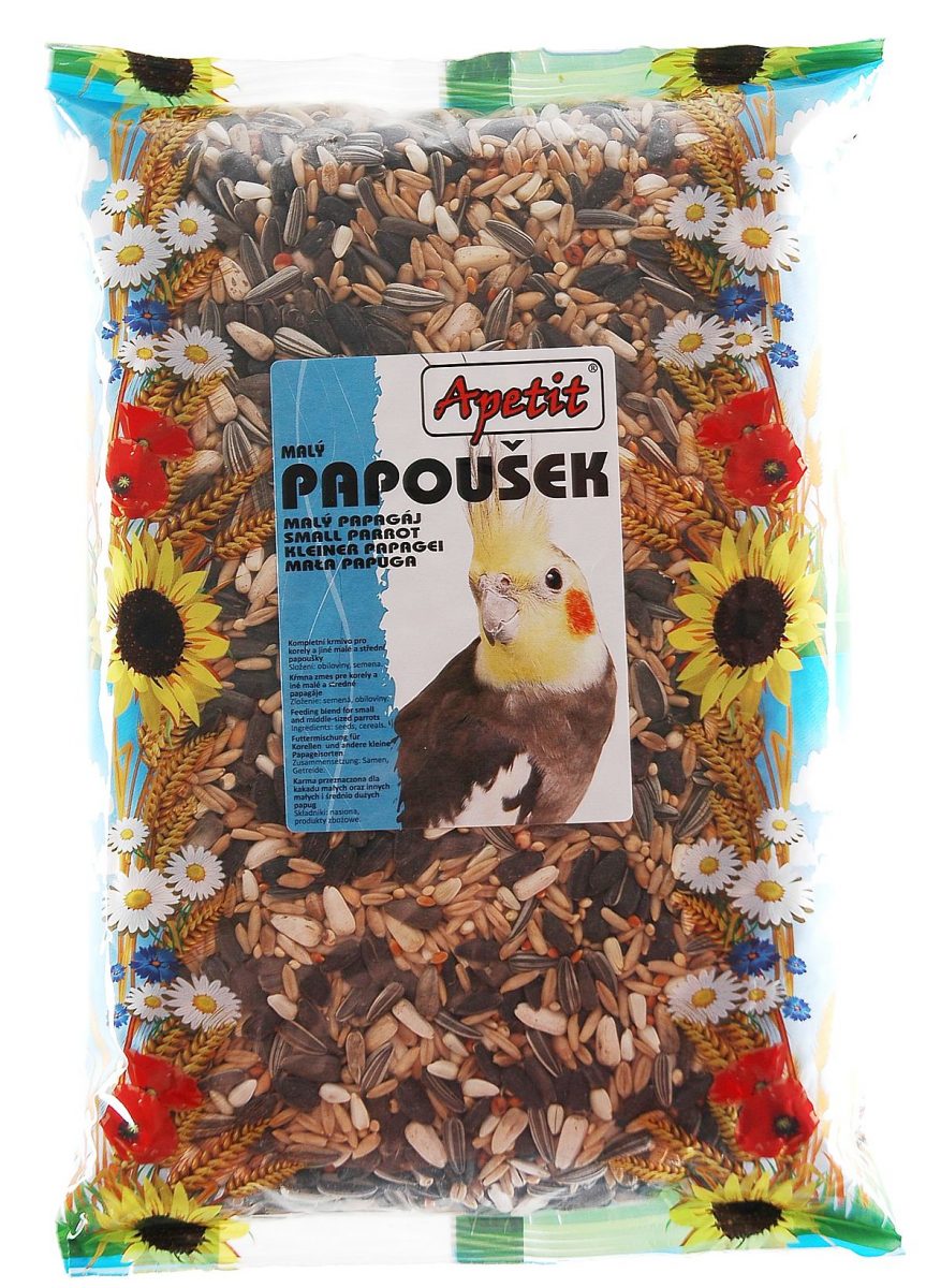 Kompletní krmná směs po malé a střední papoušky. Složení: slunečnice bílá, slunečnice žíhaná velkozrná, slunečnice žíhaná, proso žluté, červené, cardi, oves nahý, slunečnice černá. Cena uvedena za 1 ks (800 g balení).