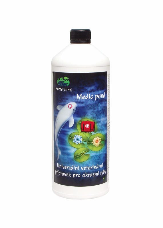 Home pond Medic pond 1 l je širokospektrální přípravek působící antibakteriálně, proti parazitům a proti plísním