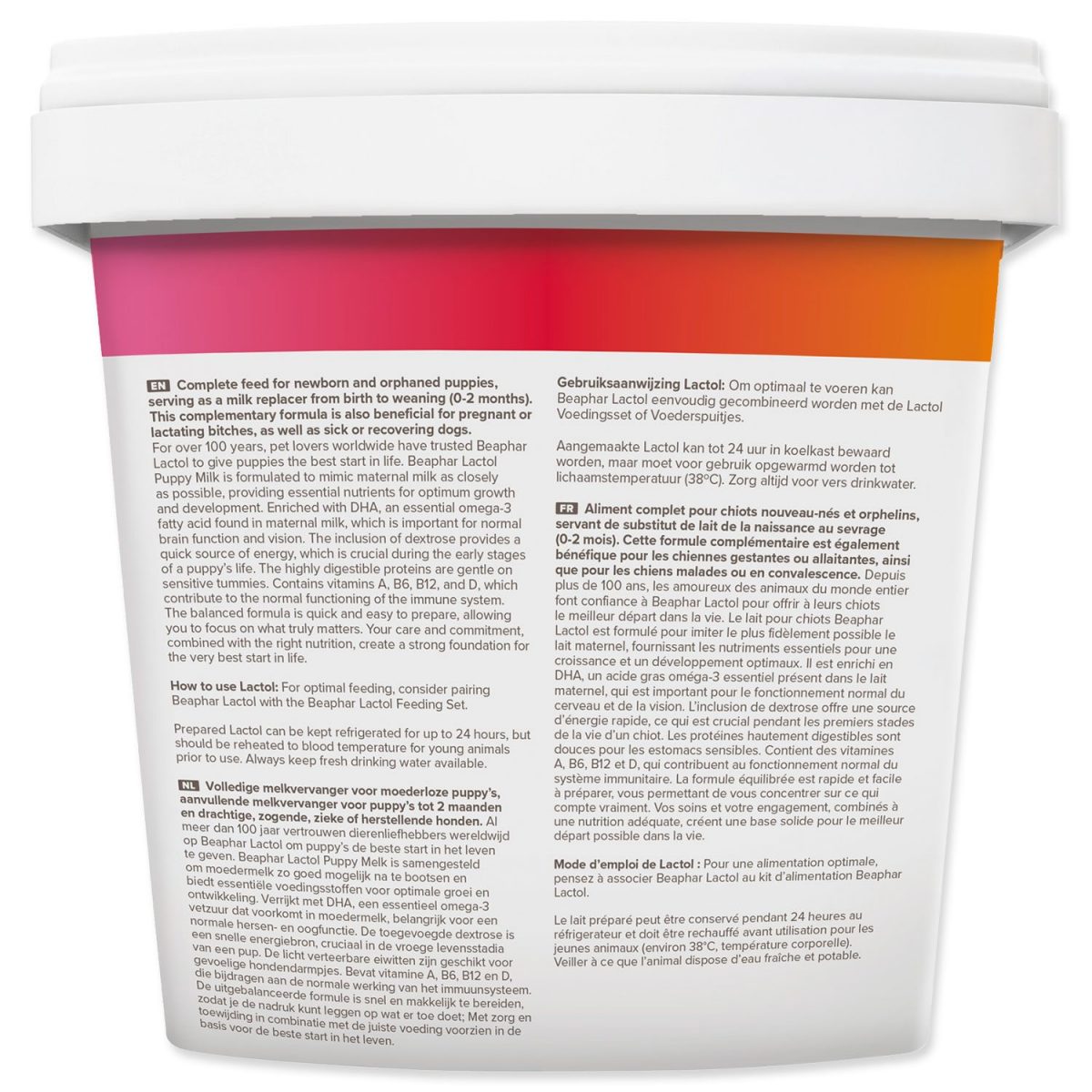 Lactol Puppy Milk je kompletní krmivo pro štěňata, březí, kojící nebo nemocné feny. Ideální pro osiřelá mláďata a štěňata z velkých vrhůn nebo jako pomoc při odstavu. Sušené mléko Beaphar doporučují generace špičkových chovatelů a odborníků.