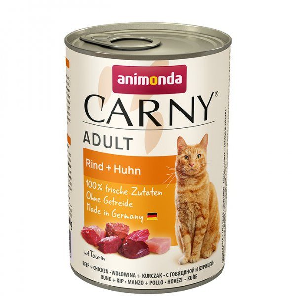 Konzervy Animonda Carny Adult jsou vyrobeny výhradně z čerstvého masa. Obsahují speciální kombinaci antioxidantů, které chrání imunitní systém koček a posilují jejich obranyschopnost. Animonda Carny Adult je vyvážené krmivo, které je přizpůsobeno požadavkům dospělých koček. Bez barviv a umělých konzervantů.