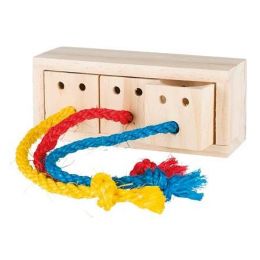 - v jednotlivých kostkách se ukryje pamlsek a zataháním za sisalový provázek si králík otevře šuplík kde je pamlsek schován