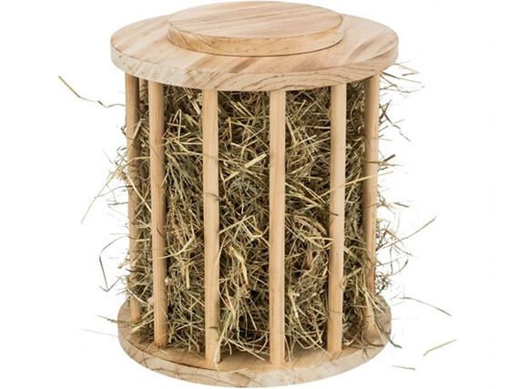 Díky víku nemohou morčátka vlézt do jeslí a znečistit seno výkaly a močí. Dřevěný válec tak udržuje krmení v čistotě.