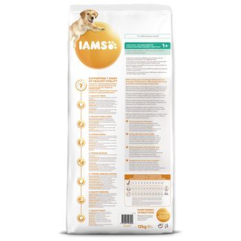 Naším závazkem je dopřát psům specializované krmivo se skvělou chutí, které si váš domácí mazlíček bezvýhradně zamiluje a které bude podporovat všech sedm znaků zdravé vitality. Oproti krmivu IAMS pro dospělé psy s čerstvým kuřecím masem obsahuje tato receptura o 30 % méně tuku než naše běžná receptura pro dospělé psy, takže přispívá k udržení zdravé tělesné hmotnosti. Křupavé granule a optimální hladina minerálů pečuje o zdraví psích zubů a snižuje vznik zubního kamene. Díky vyváženému obsahu omega-3 a omega-6 mastných kyselin můžete obdivovat zdravou kůži a lesklou srst svého zvířete. Díky nezbytným minerálům, vitamínu D a prvotřídním bílkovinám pro pevné kosti a silné svaly může váš pes běhat a řádit a vy se radovat spolu s ním. Naše receptura také obsahuje kombinaci antioxidantů s vitamíny C a E, které posilují imunitu. Trávicí soustavu podporujeme optimální směsí vlákniny, prebiotik a řepné dužiny. Naše krmiva navíc obsahují základní živiny pro zdravé srdce, jako je taurin, aby vám váš miláček nikdy nepřestal projevovat lásku. Aby byly naše receptury chutnější, přidali jsme do nich čerstvé kuřecí maso. Díky optimálnímu množství bílkovin podle potřeb psa jsou naše krmiva také lépe stravitelná.
