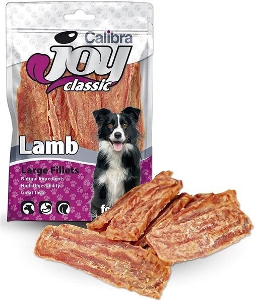 Masový pamlsek Calibra Joy pro psy – filety z jehněčího masa s optimální dietetickou hodnotou, vhodné pro velmi citlivé zažívání. Specifické vlastnosti: Hypoalergenní - citlivé zažívání, Stáří psa: Dospělý, Velikost plemene: Malé 5-10 kg, Velké a obří nad 25 kg, Střední 10-25 kg