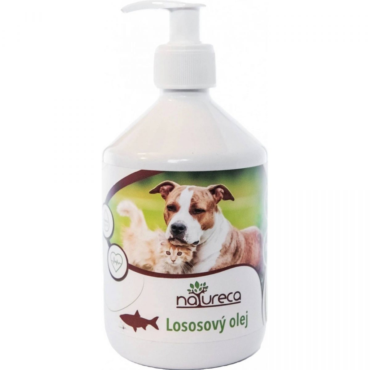 Lososový olej NATURECA je bohatý na omega 3, 6 a 9 mastné kyseliny a podávání těchto extra mastných kyselin má pozitivní vliv na životu potřebné tělesné funkce psa i kočky. Omega 3 mastné kyseliny mimo jiné udržují nízký krevní tlak a cholesterol. Omega 6 a 9 mastné kyseliny eliminují zánětlivé reakce a také zajišťují udržení odolnosti a obranyschopnosti Vašeho zvířete.
