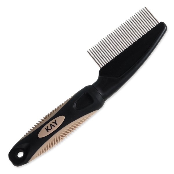 Jednostranný plastový kartáč s hustými kovovými zuby.