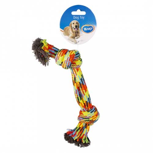 Hračka pro psy DUVO+ Lana se dvěma uzly o délce 23 cm je ideální volbou pro aportování, přetahování i kousání.