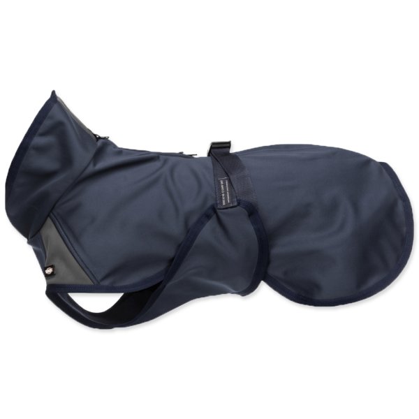 se dvěma vodotěsnými zipy: v oblasti krku pro připoutání vodítka, v zadní části pro kombinaci s postrojem