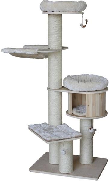 Luxusní škrabadlo Nobby pro kočky vyrobené z překližky a plyšových pelíšků. Barva: hnědá, Vlastnosti: Odpočívadla s boudičkou, Škrabadla se sloupkem, Výška: Do 1,8 metru