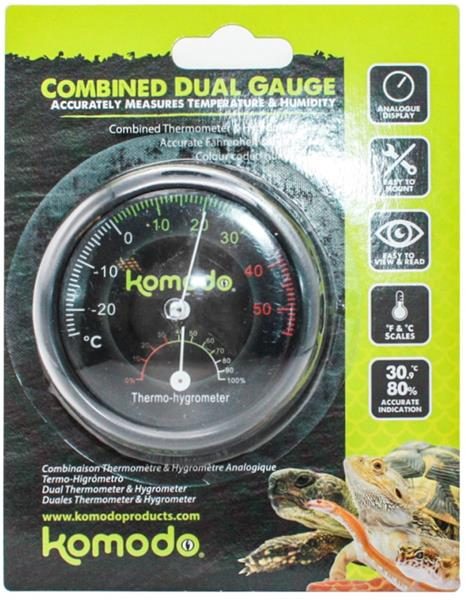 Sledování teploty a vlhkosti v teráriu je nezbytné pro úspěšný chov jakéhokoli terarijního zvířete. Kombinovaný teploměr a vlhkoměr Komodo s analogovým displejem má vše, co k tomu potřebujete.