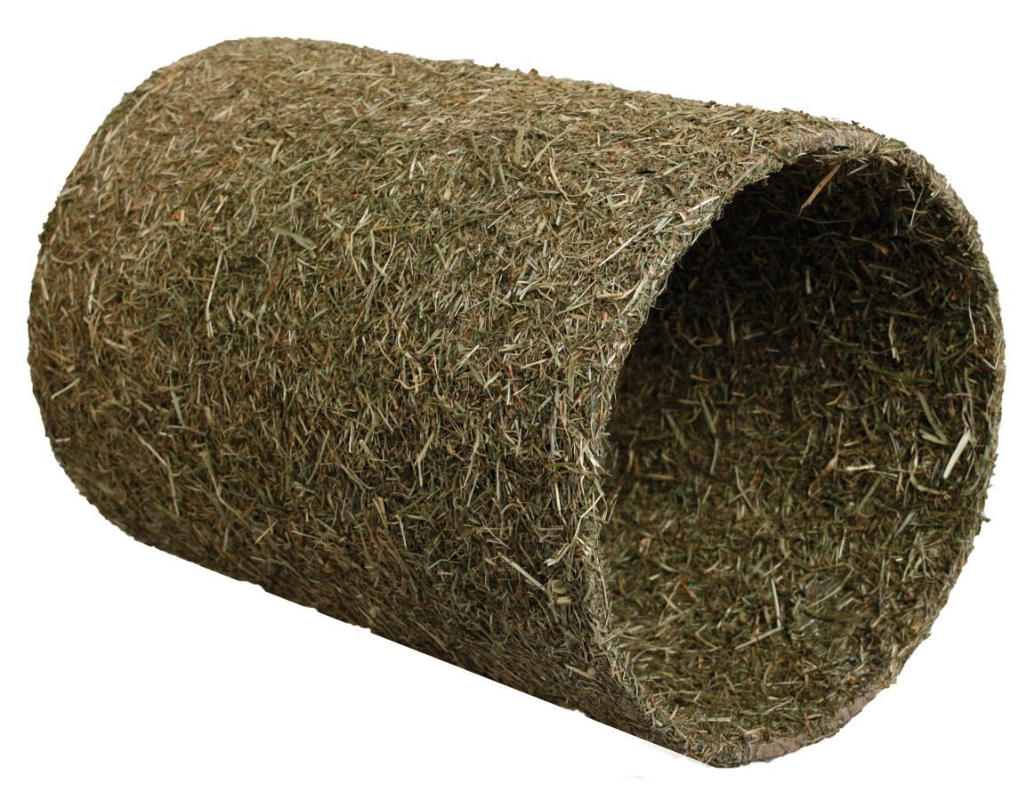 Králíčci, morčátka a další velcí hlodavci se rádi schovávají v tunelu z aromatického sena a ohryzávají ho. Tunel je ideální také pro menší hlodavce jako myšky a křečci na hraní a okusování. Materiál: Sušená tráva